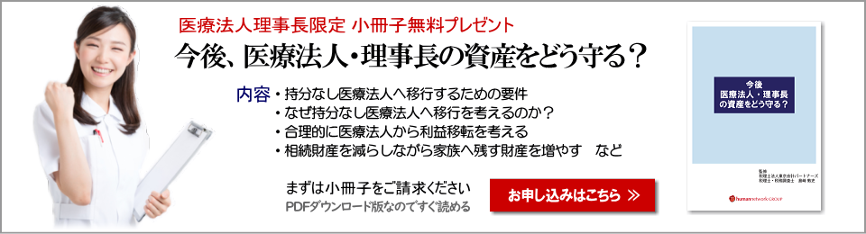 詳しくは小冊子「今後、医療法人・理事長の資産をどう守る!?」をお読みください。
